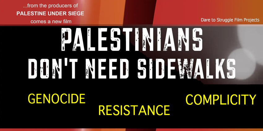 You are invited to come along to watch the brilliant documentary Palestinians Don't Need Sidewalks with a much needed debrief afterwards.