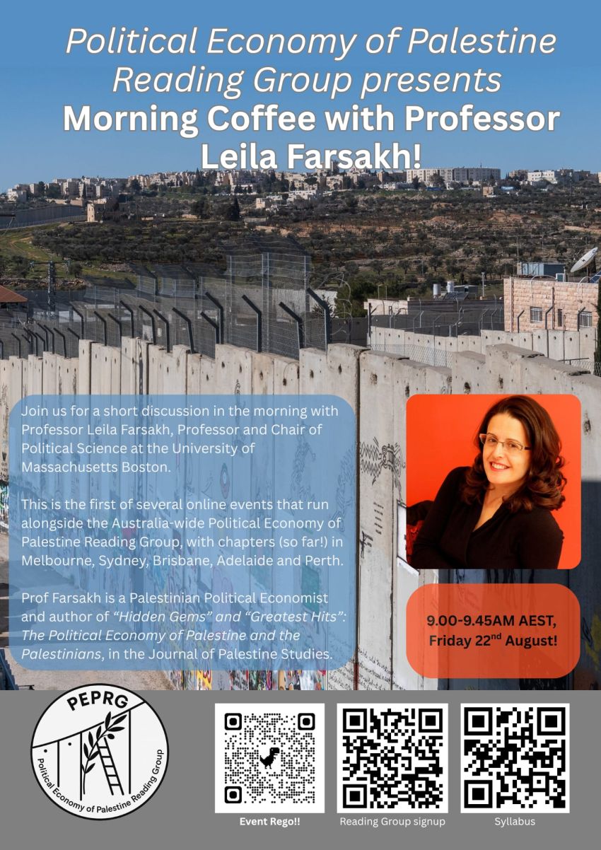 This is the first of several online events that run alongside the Australia-wide Political Economy of Palestine Reading Group with chapters in Melbourne, Sydney, Brisbane, Adelaide and Perth