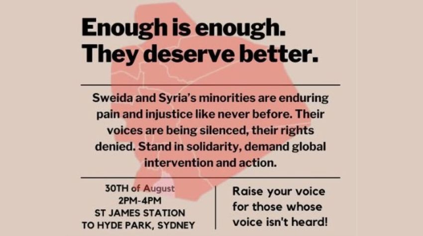 People across the globe will be gathering on August 30 to stand in solidarity with Sweida’s call for independence and the right to self-determination.