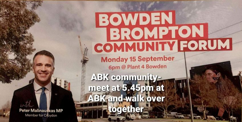We will be going along to another community forum! This time in our backyard for Bowden/Brompton.