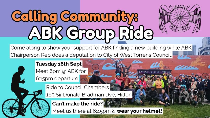 Come along to show your support for ABK finding a new building while ABK Chairperson Reb does a deputation to West Torrens Council.