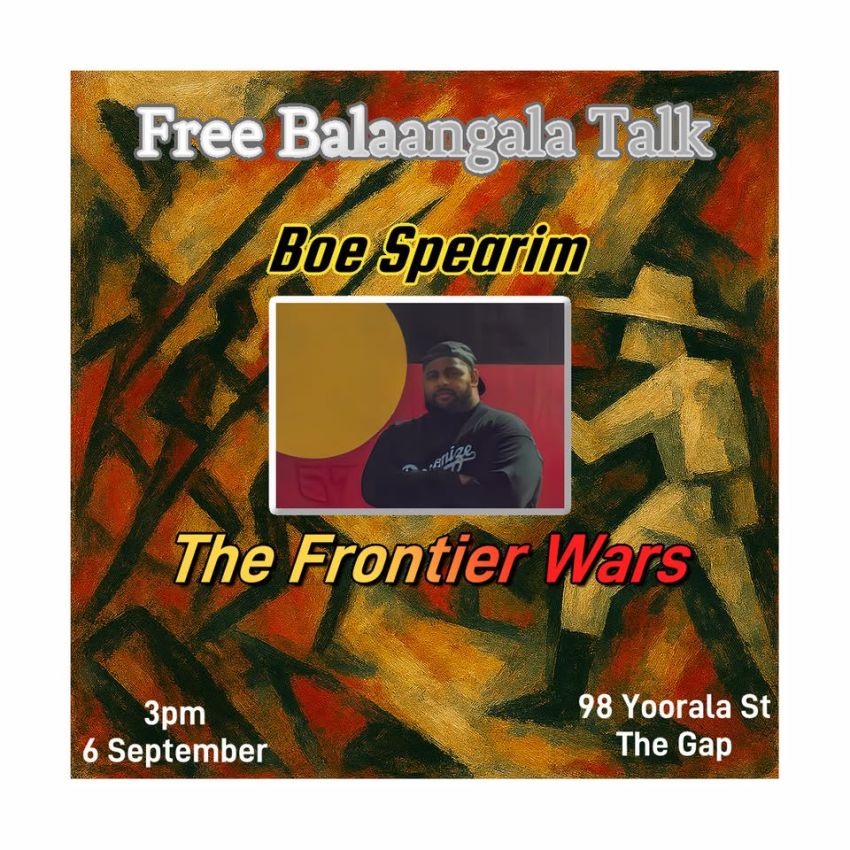 At Balaangala's regular quarterly meetings we try to have a guest speaker. This September we will present Mr Boe Spearim, creator of the podcast series, The Frontier Wars, who will speak on this topic and his other work. Boe's long standing commitment to truth telling is leaving a great legacy for all to share. Please RSVP vie email to balaangalathegap@gmail.com to indicate numbers for catering. You are welcome to bring a plate. You can join at the meeting.