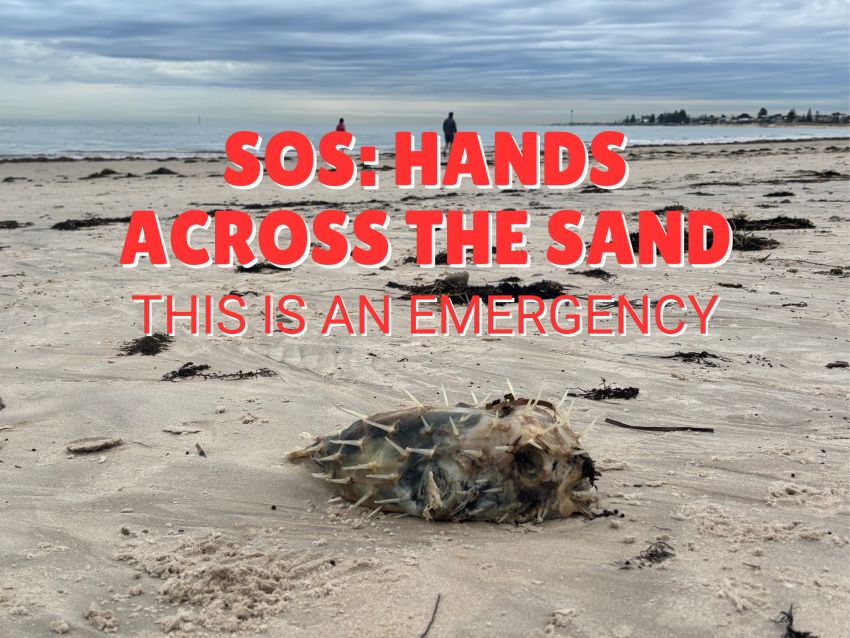 SOS: this is an emergency! Come join the community at Seacliff Beach to send a message to the federal government that the algal bloom devastating South Australia’s coast must urgently be declared a national disaster.