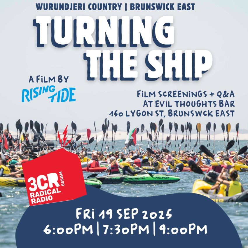 In conjunction with 3CR Radical radio, join Rising Tide Victoria at one (or multiple screenings) of Turning the Ship! on Friday 19 September.