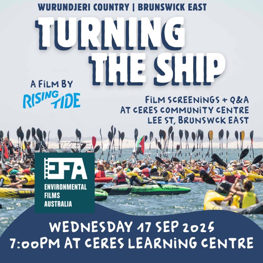 In conjunction with Environmental Films Australia, join Naarm Hub, Rising Tide Victoria at CERES for a special film event feature of Turning the Ship: 2024 People's Blockade of the World's Largest Coal Port and Nguura Muruy (Forest Camp) - A Front Line Story.