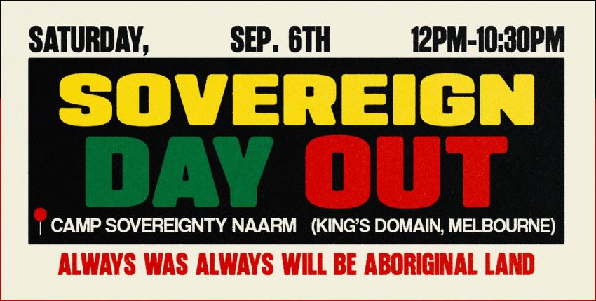 Join us at Sovereign Day Out. A genre bending lineup... Come together and witness this multicultural countrie's sonics, stories and dance Music, Speakers, Stalls, Dance, Food. 12PM-late.
