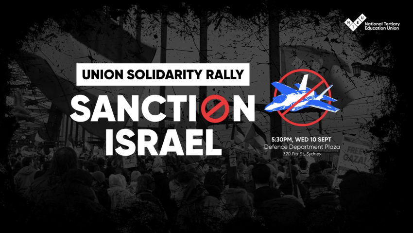 Following the ACTU’s recent statement on Gaza calling for sanctions on Israel (including an end to all military trade) NTEU NSW has initiated a cross-union day of action; let’s use our collective power to help stop the devastating genocide unfolding in Gaza.