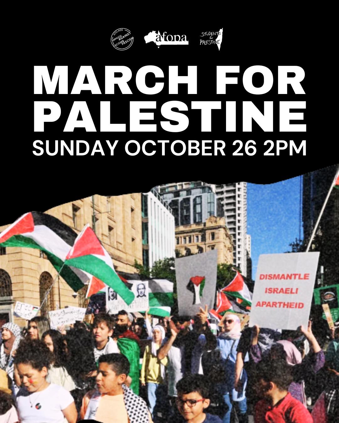 Join us and march in solidarity with Palestine on Sunday the 26th of October.