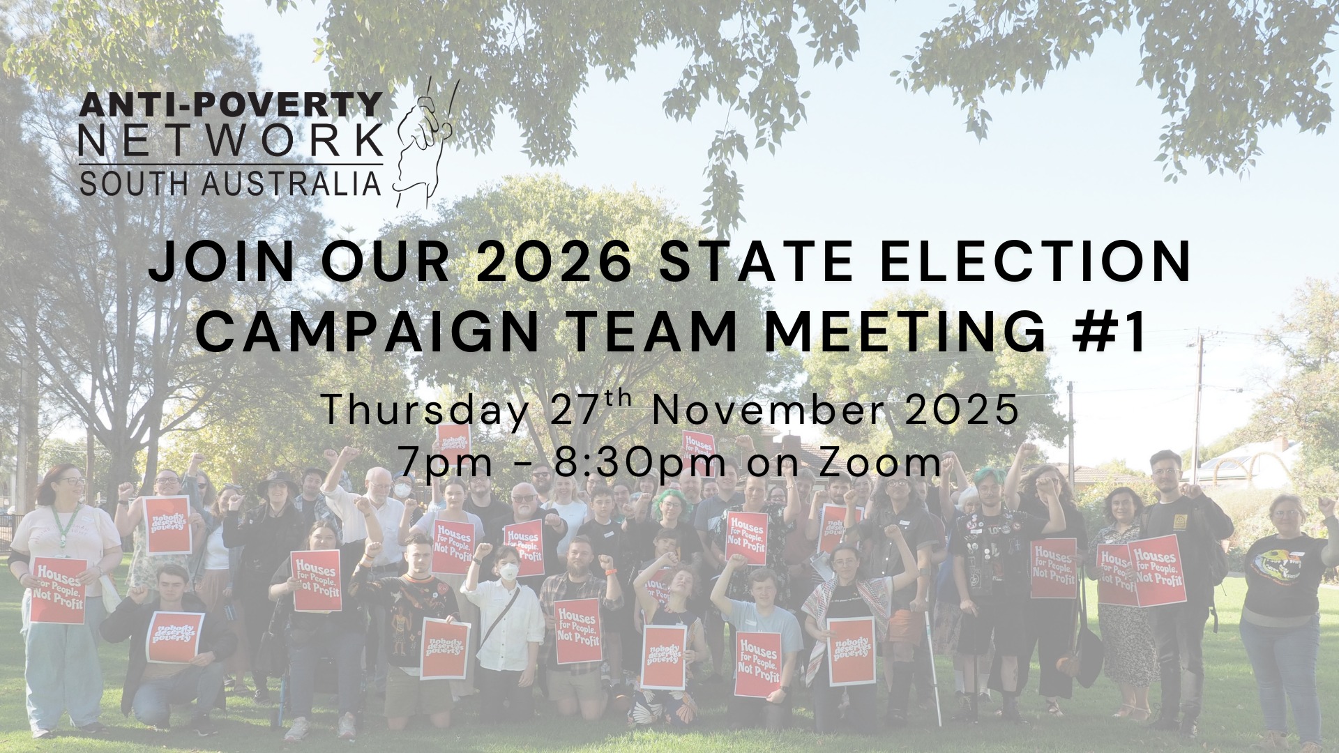 Our Campaigns Team leads the fight for real action on the poverty and housing crises in South Australia. We mobilise people on low incomes and our allies to speak out in the community, engage with the media, and hold politicians accountable.