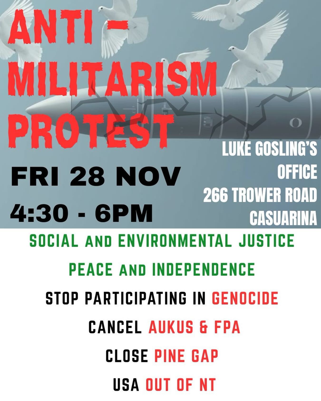 Unite with us in protest against AUKUS and the increasing militarism of the NT.