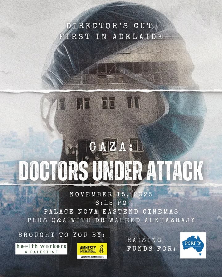 The film the BBC refused to air. A forensic investigation into the relentless targeting and killing of health workers in Gaza through personal stories of doctors trying to treat patients under extraordinary conditions. In a collaboration of Health Workers 4 Palestine with Amnesty International, this director's cut will be screened in Adelaide for the first time.