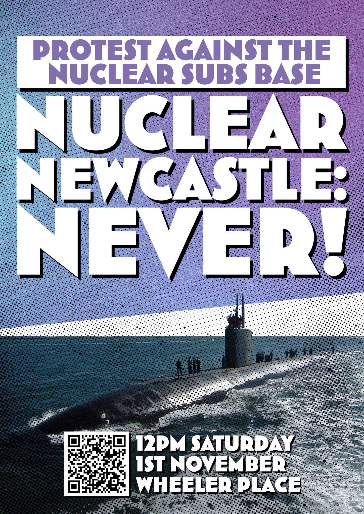 Hunter Peace Group is holding a rally, a wee march and a leaflet handout on Saturday 1st November. If you are concerned that Newcastle will become the designated nuclear submarine base please join us and help us spread the word.