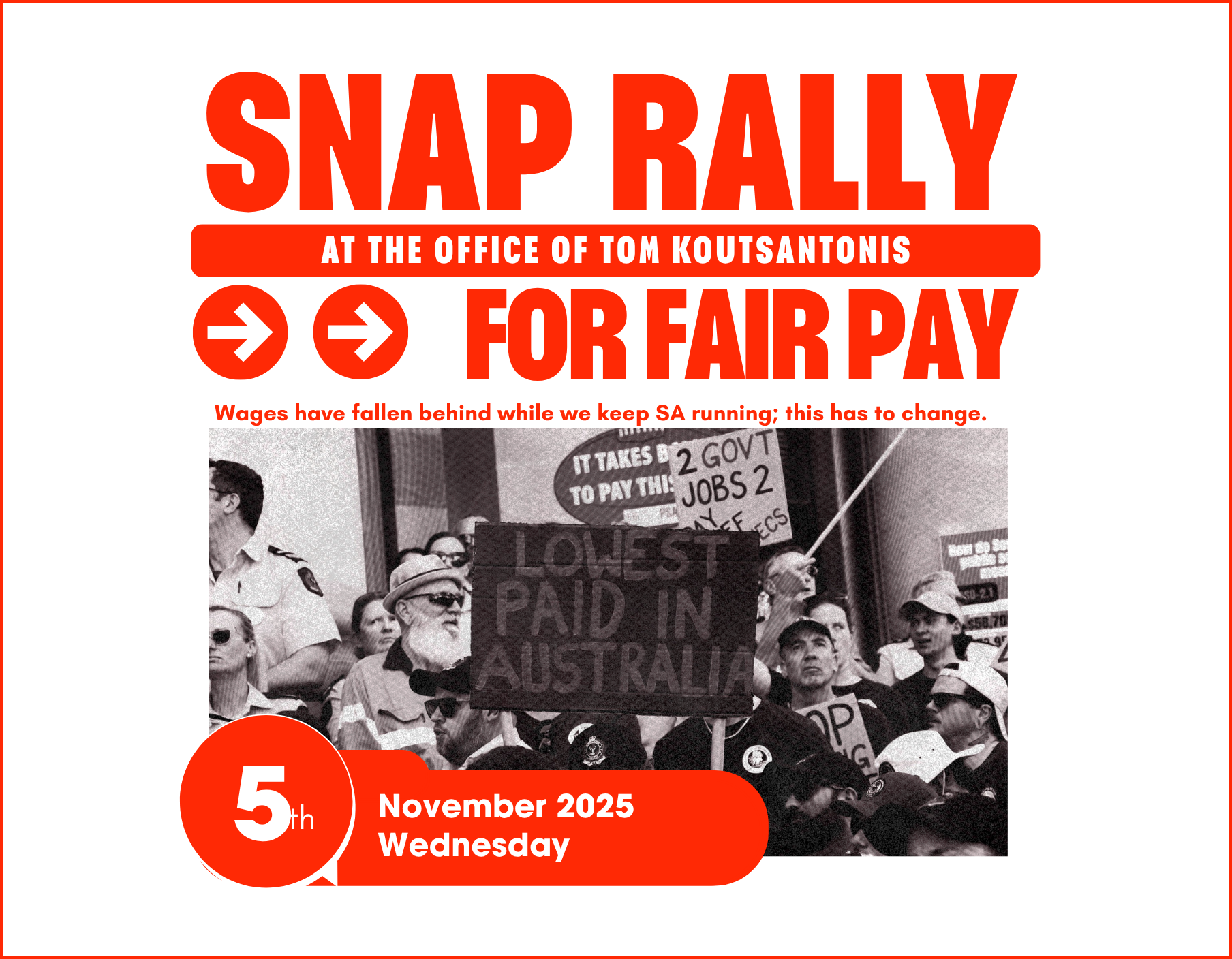 All SA Government employees covered by the Salaried Enterprise Agreement and supporters are welcome to attend. We highly encourage non-member to join the PSA, to join our fight for fair pay & and to receive exclusive union support. This fight needs you!
