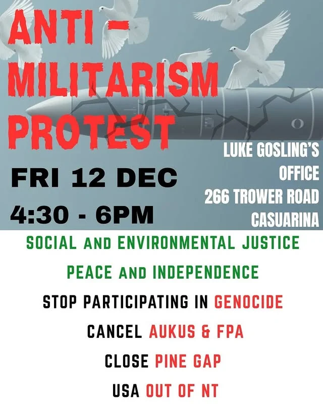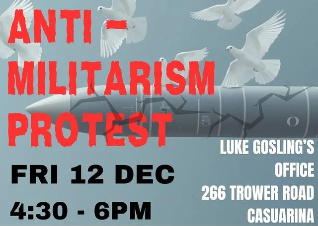 Unite with us in protest against AUKUS and the increasing militarism of the NT.
