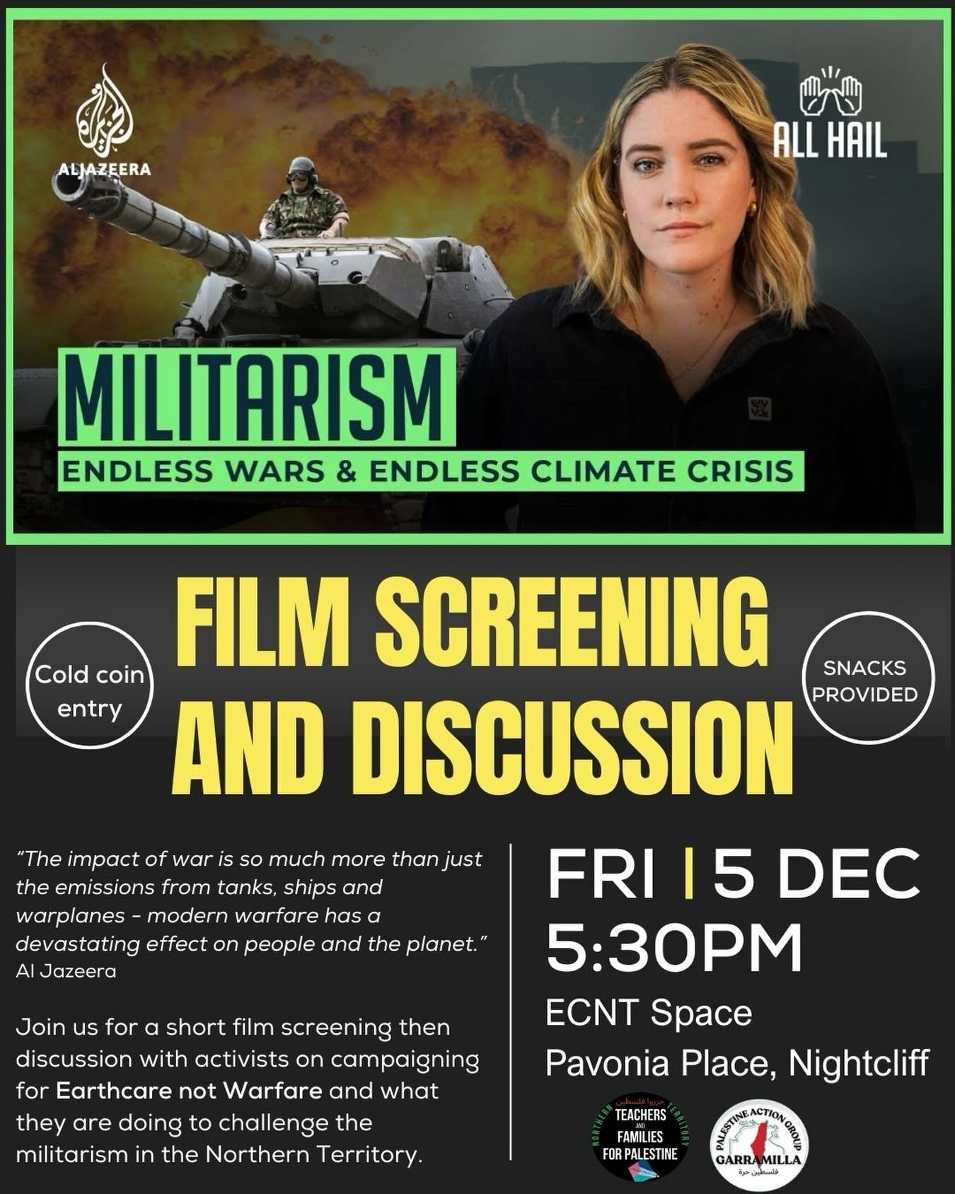 Join us for this film screening and discussion about advocating for Earthcare not Warfare.
