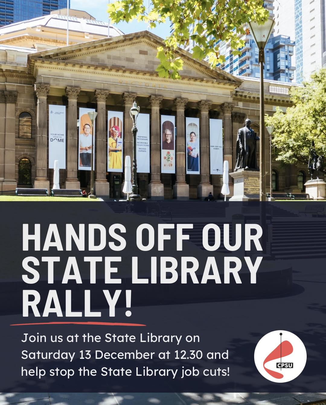 Join the protest called by CPSU Vic at the State Library on December 13 at 12.30pm.