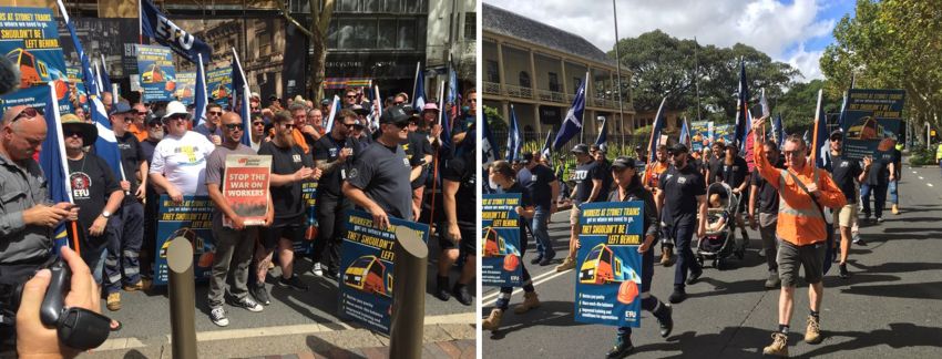ETU members gathered in Hyde Park and marched to NSW Parliament.