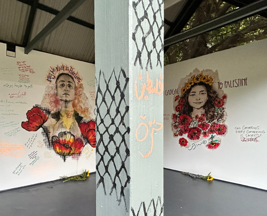 Saffaa rebuilt an abandoned hut in the grounds of the ARCC, in its expansive green space, and painted two dedications: one to Palestinian queer poet Candy Royalle and the other to young Palestinian Gazan martyr Hind Rajab.