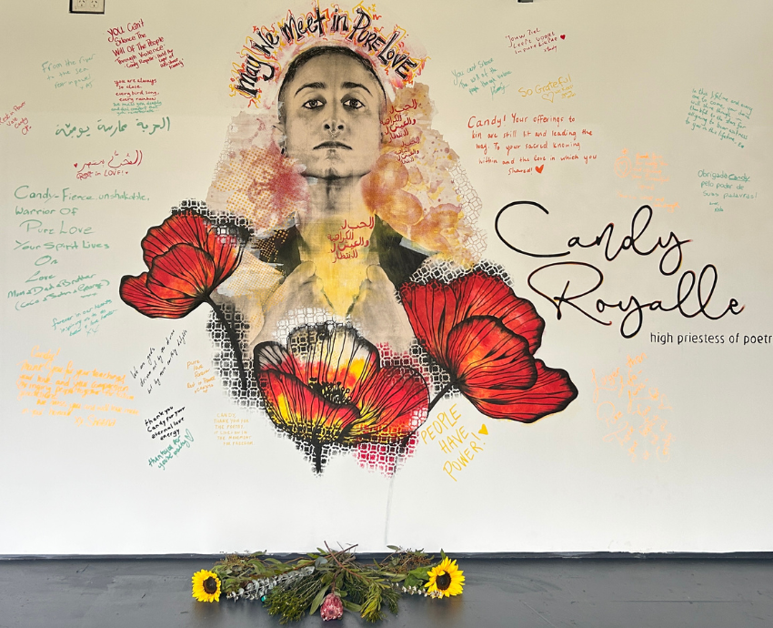Candy Royalle, a fiercely political queer poet, passed away from cancer in 2018 and is missed by her queer and Palestinian communities.