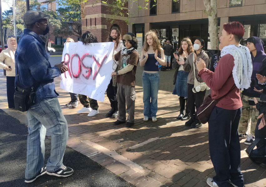 Students rallied outside the Parramatta Local Court on September 12 to support Mazin, a student who is appealing his conviction of assault after a protest last year demanded Western Sydney University (WSU) cut ties with companies linked to the genocide in Gaza.