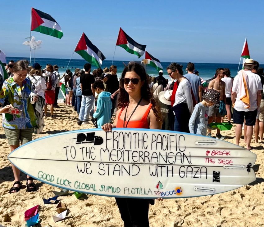 Jews Against the Occupation ’48 held a solidarity event on Bondi Beach to highlight the Sumud Flotilla trying to reach Gaza with aid, on September 7. Jews, Palestinians and others sent off origami boats into the sea, while Zionists draped with Israeli flags and white supremacists draped in the Australian flag shouted abuse. Police had to be called to stop the pro-Israeli government protesters from trying to physically stop the family friendly event.