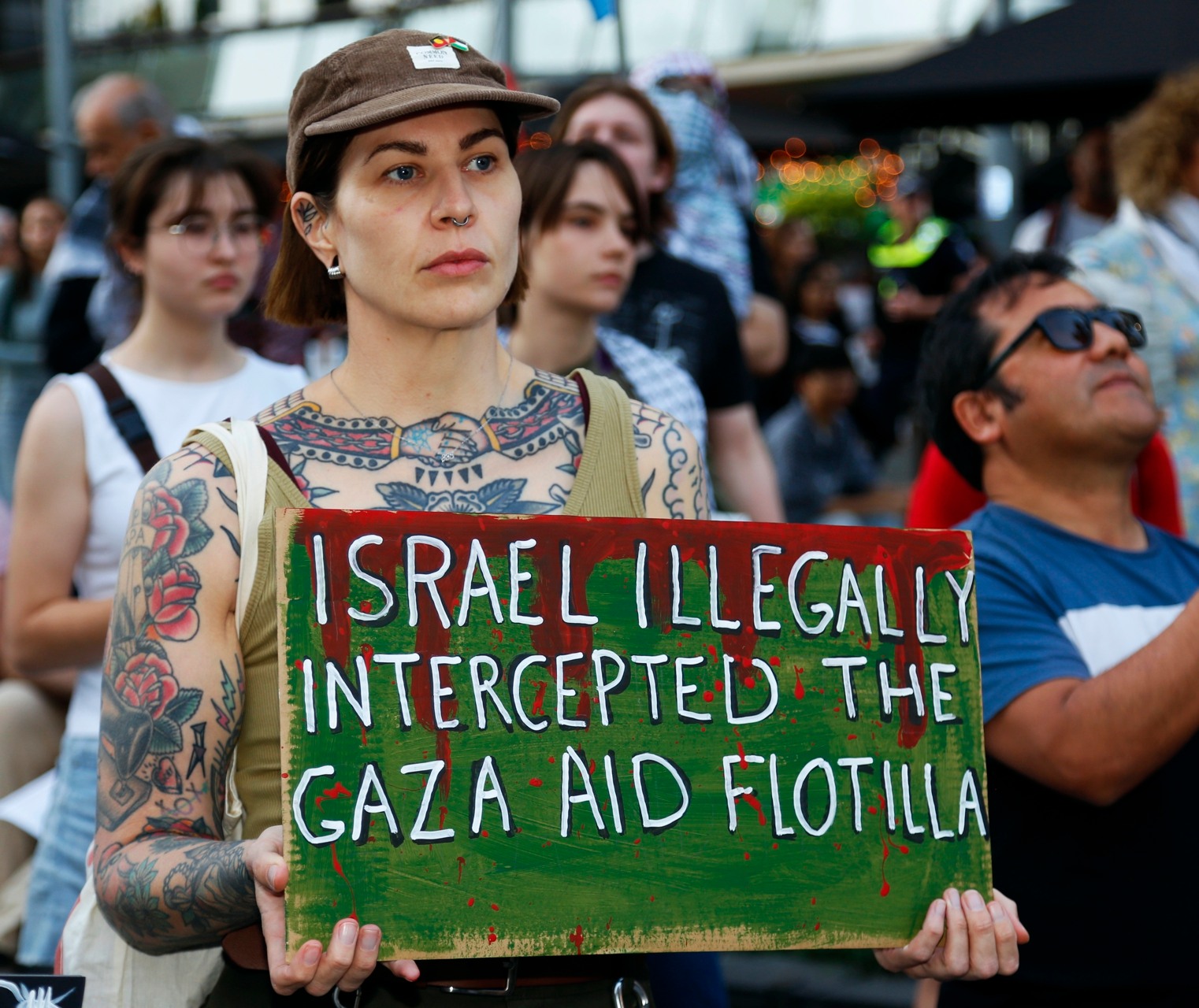 Emergency rallies in several cities demanded the Labor government pressure Israel to release participants on Sumud Flotilla after it illegally stormed their vessels in international waters and are now illegally imprisoning them.