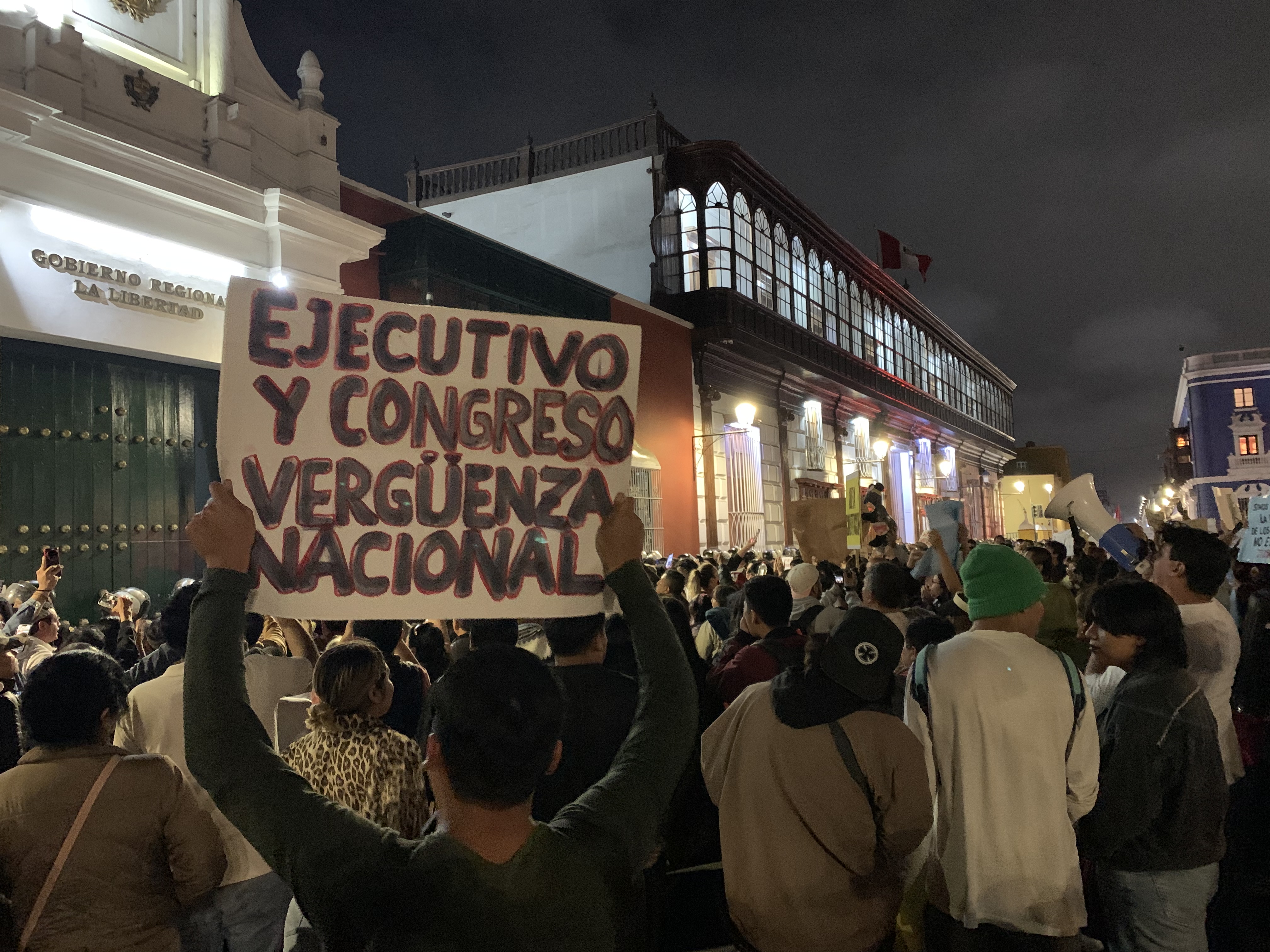 Protesters directed chants at La Libertad governor César Acuña, a multi-millionaire who made his fortune from the privatisation of education. He is the founder and leader of the Alliance for Progress Party, which dominates Congress as part of a far-right alliance of political parties.