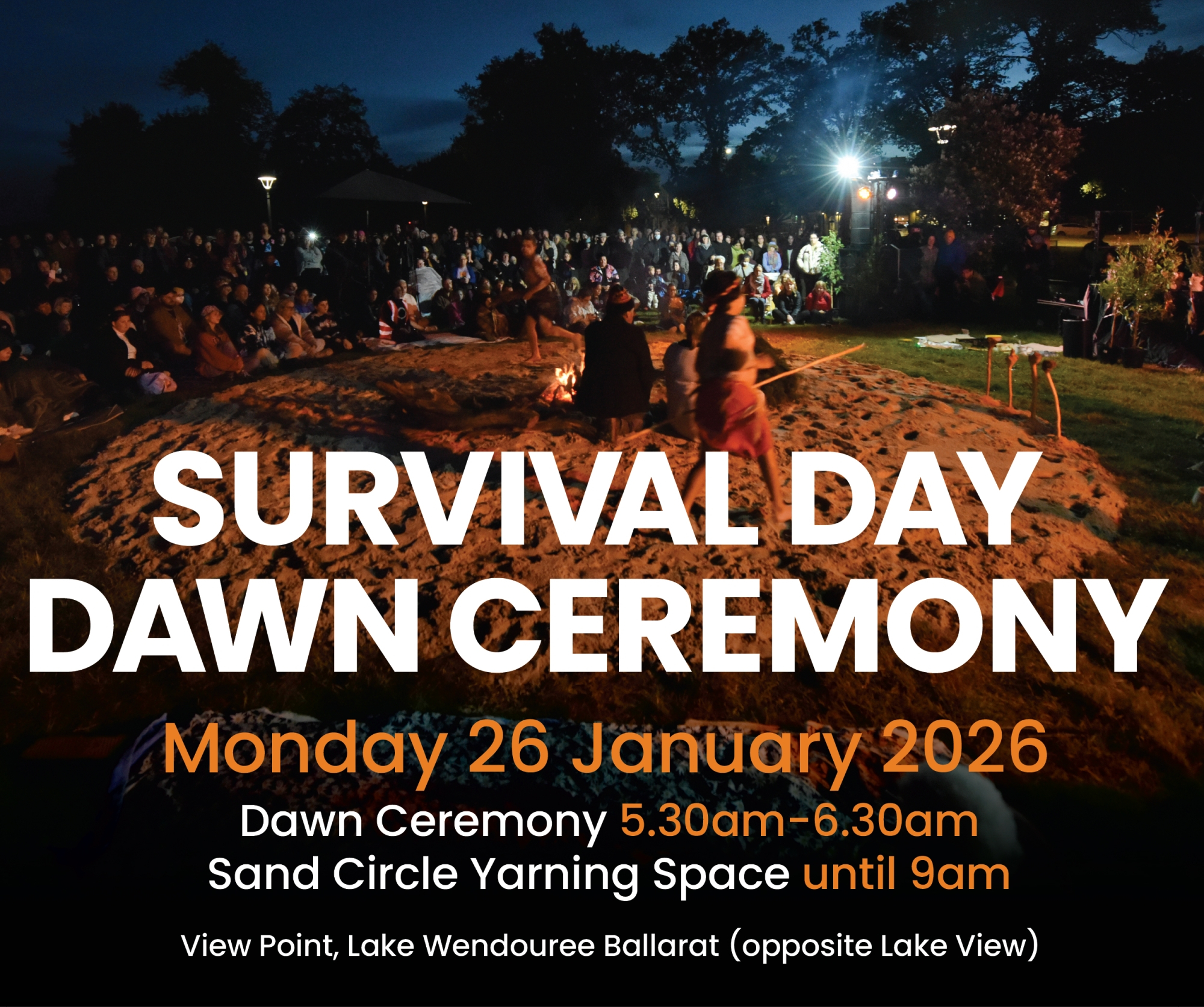 The 2026 Survival Day Dawn Ceremony will be the City of Ballarat's seventh reflection and healing event lead by the KEAG Advisory Committee collaborating with local Community.