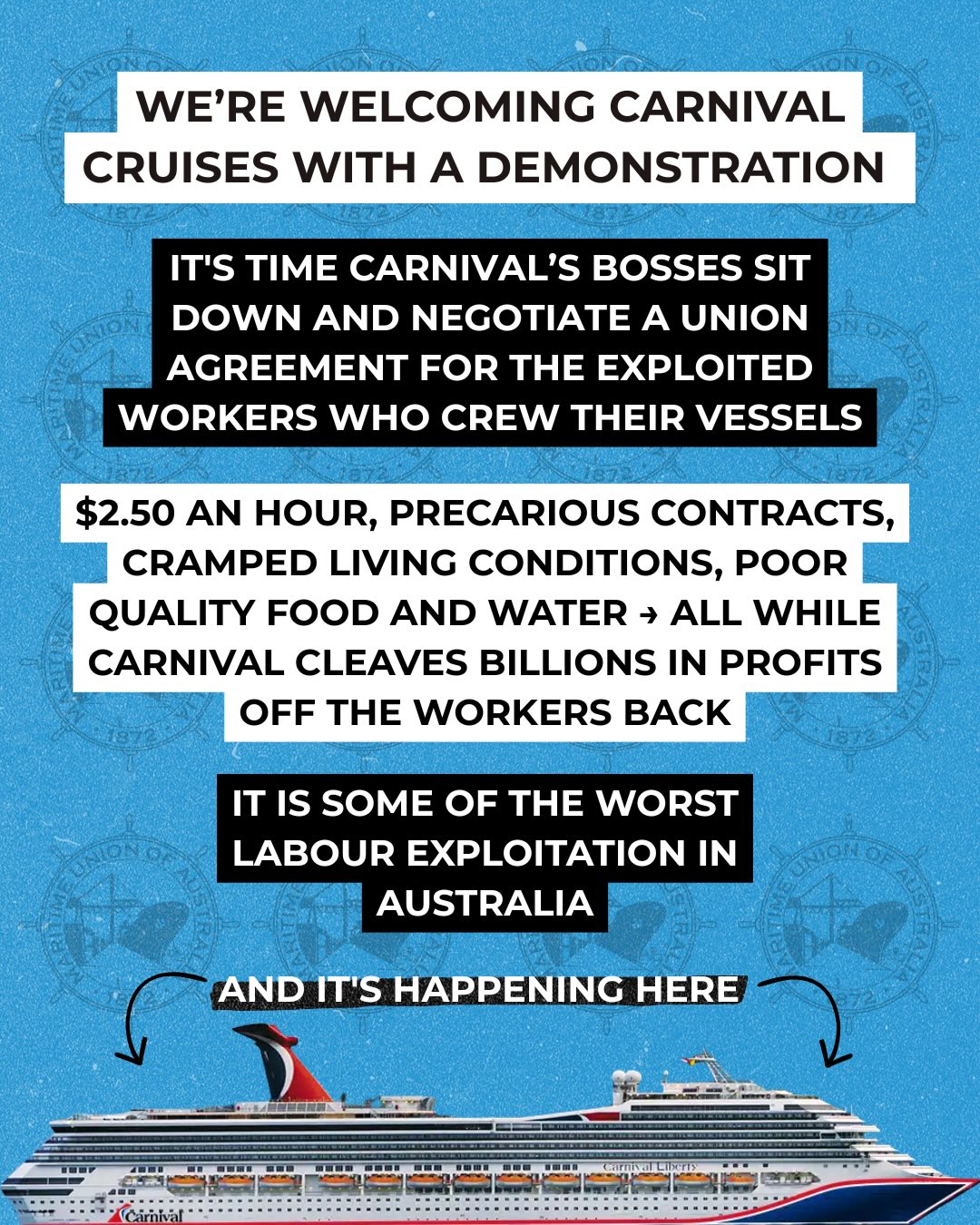 Why? Carnival (finally) agreed to meet with us, but claimed their ships don't need union agreements because "their conditions are so good".