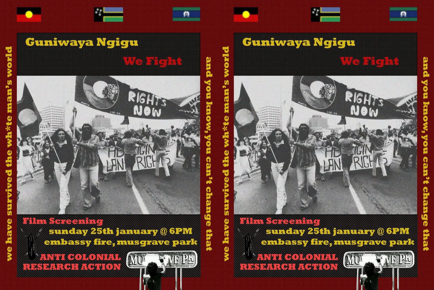 Join us on the Sunday before Invasion Day, for a screening of the film, and discussion of its continued relevance to us today, hosted by Anti Colonial Research Action (ACRA).