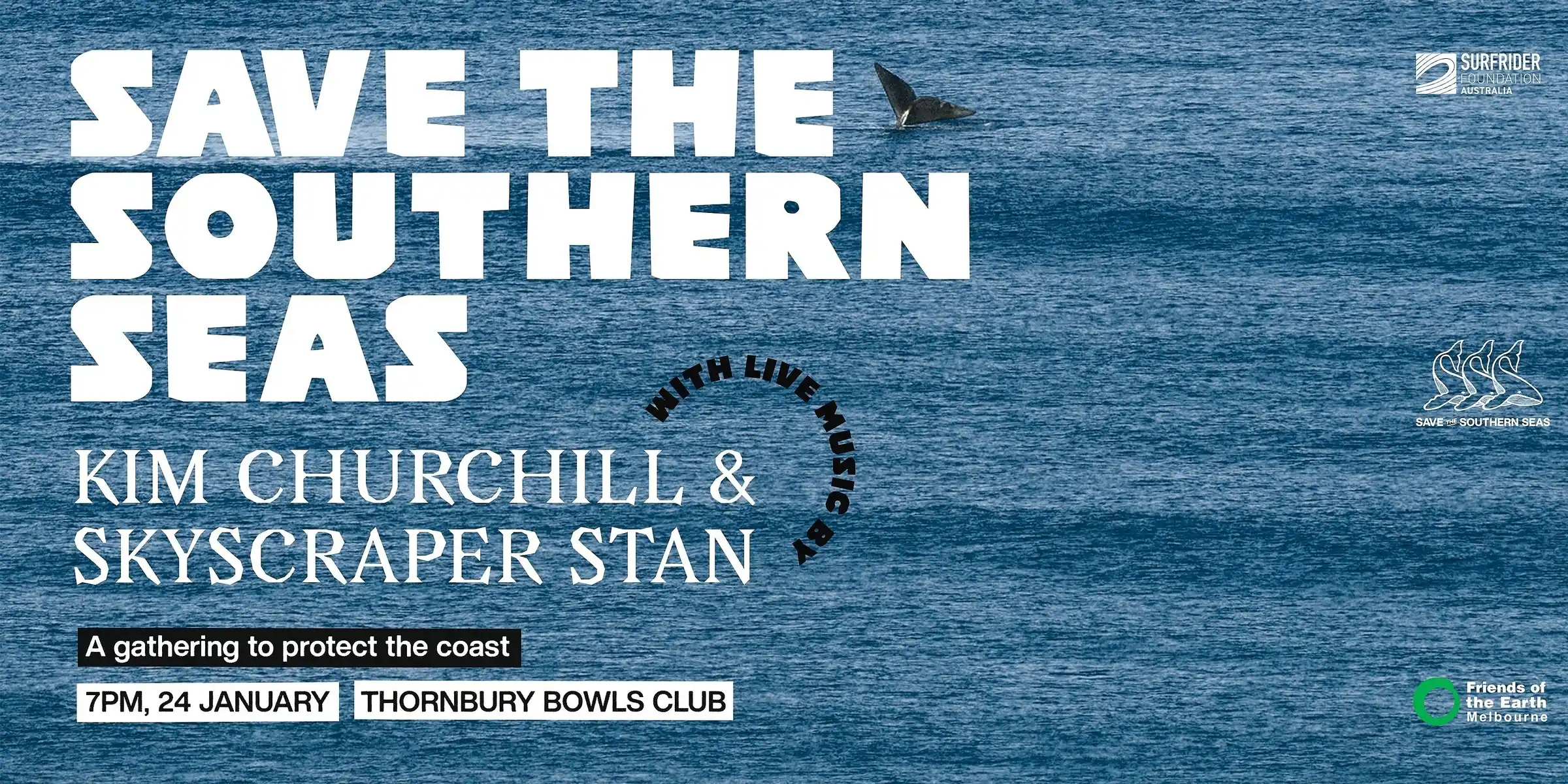Join us for a gathering to connect, listen and learn how you can have a genuine impact against the government's new plans for gas exploration off the Victorian coast. Live performances by Kim Churchill and Skyscraper Stan.