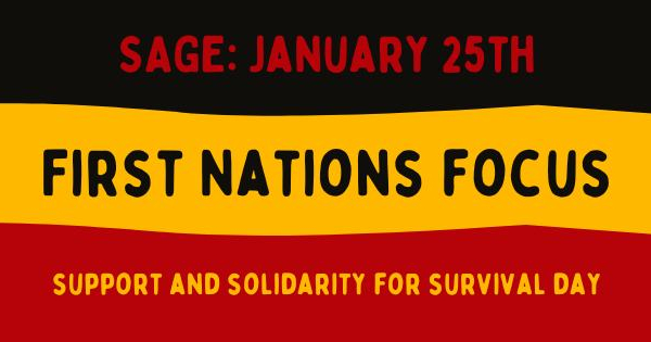 In recognition of this, SAGE’s theme this month will be “First Nations Focus: Support and Solidarity for Survival Day”.