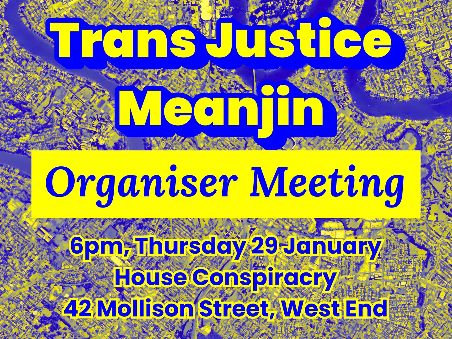 Join us at House Conspiracy in West End at 6pm Thursday 29 January to meet other people passionate about trans justice and help plan our local campaigns for the coming year.