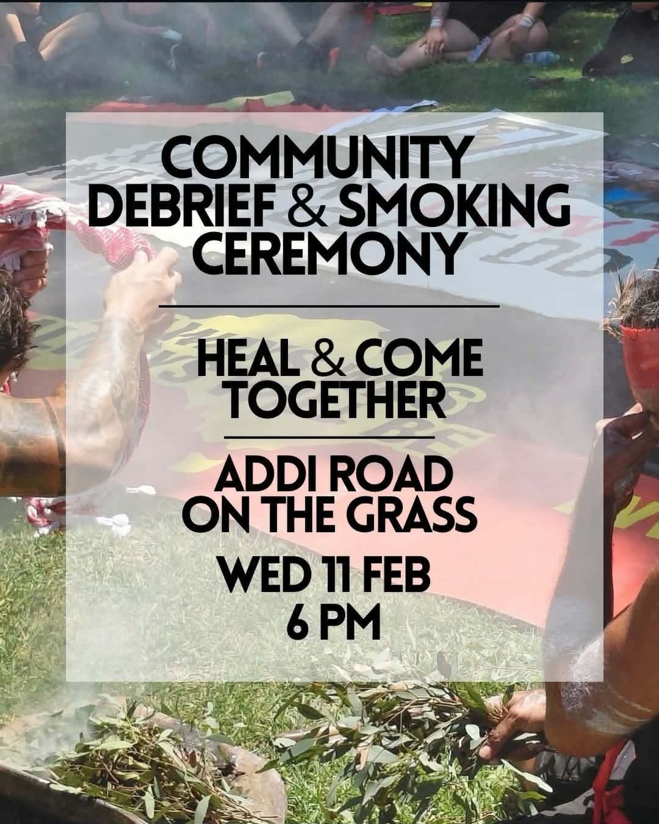 Community Care Debrief and Smoking Ceremony. Holding space for each other, grounding in our trauma, learning community tools for healing.