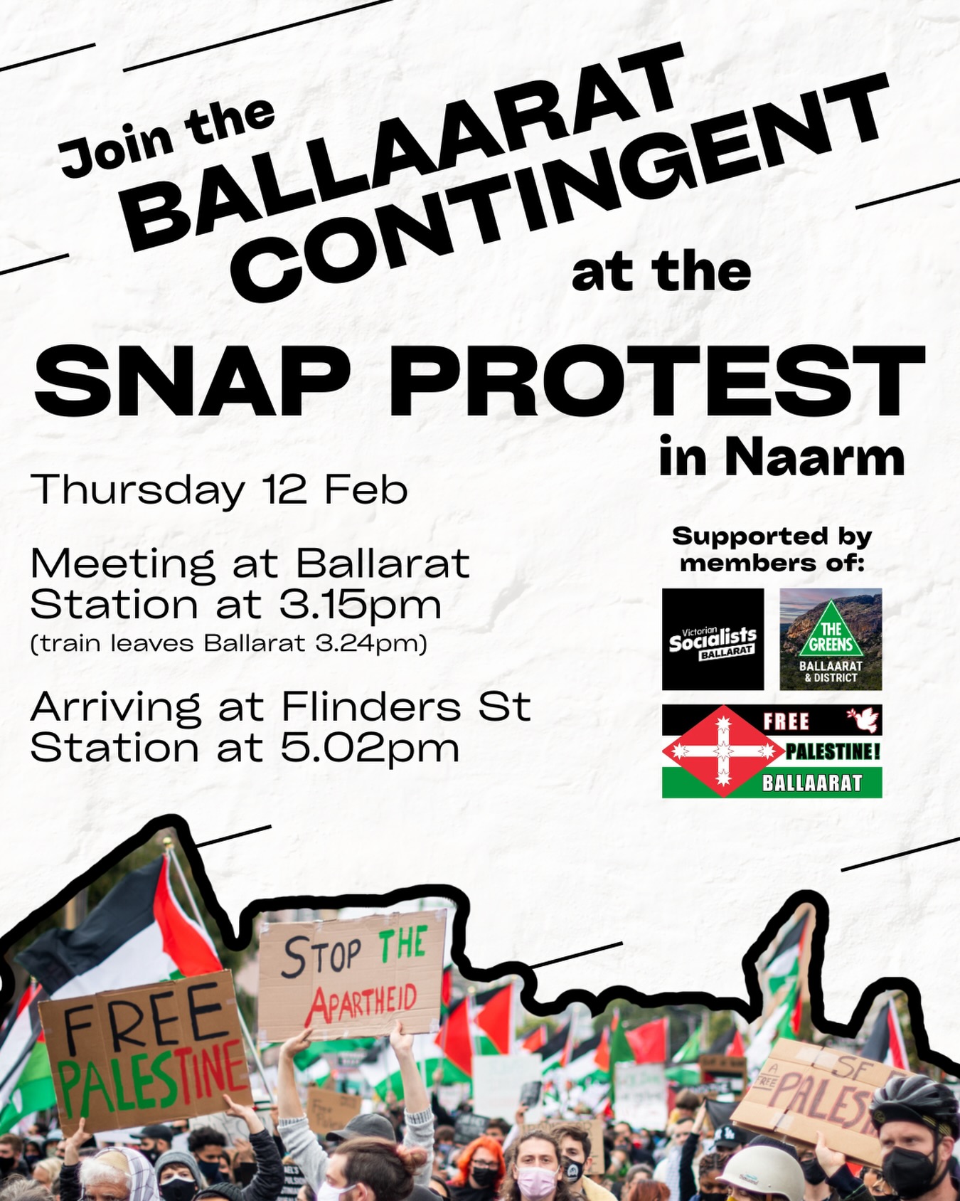 This Thursday, folks from Ballarat are heading to Naarm to stand up against apartheid and genocide.