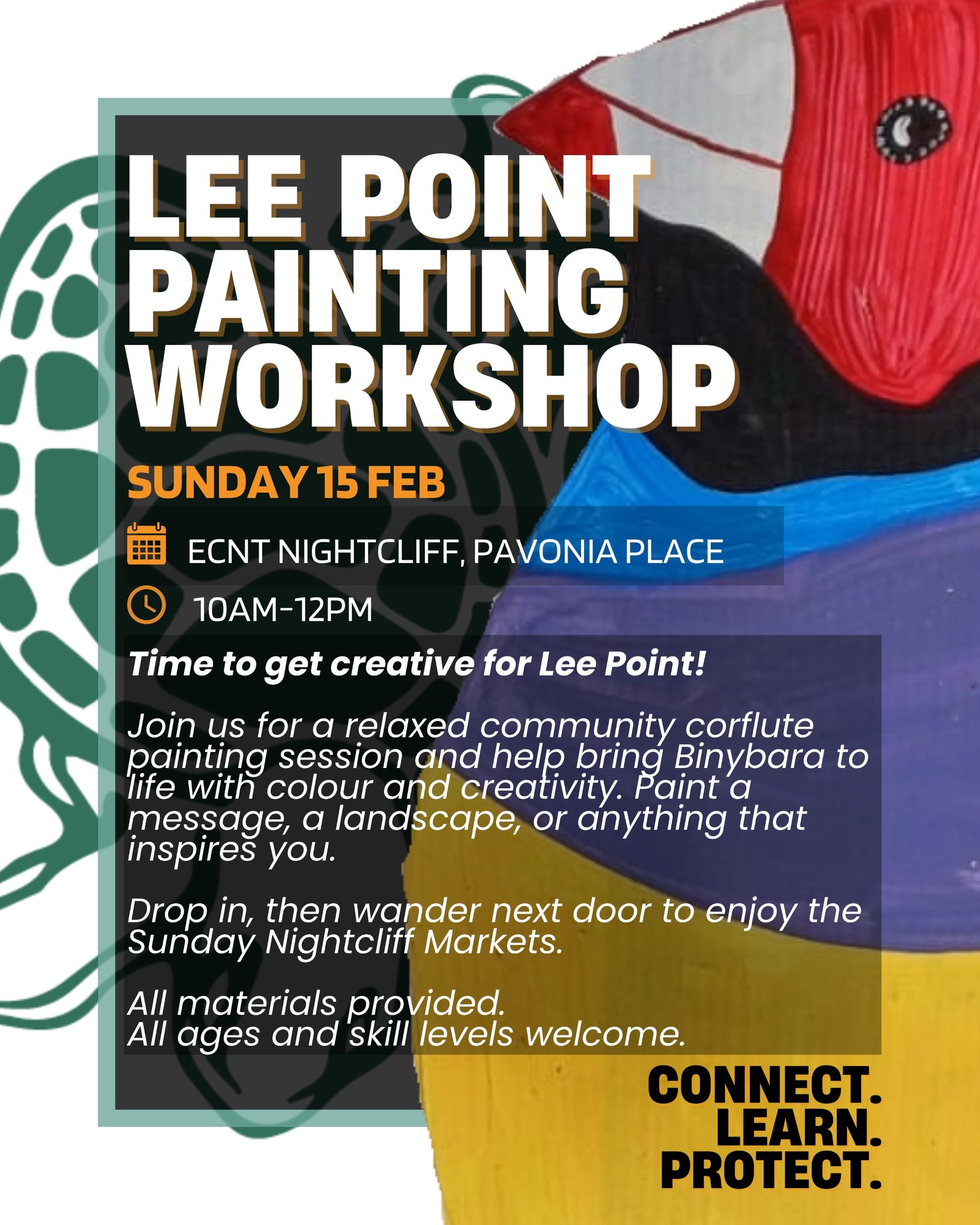 Drop in, get creative and help bring Lee Point (Binybara) to life. All materials provided. All ages and skill levels welcome.