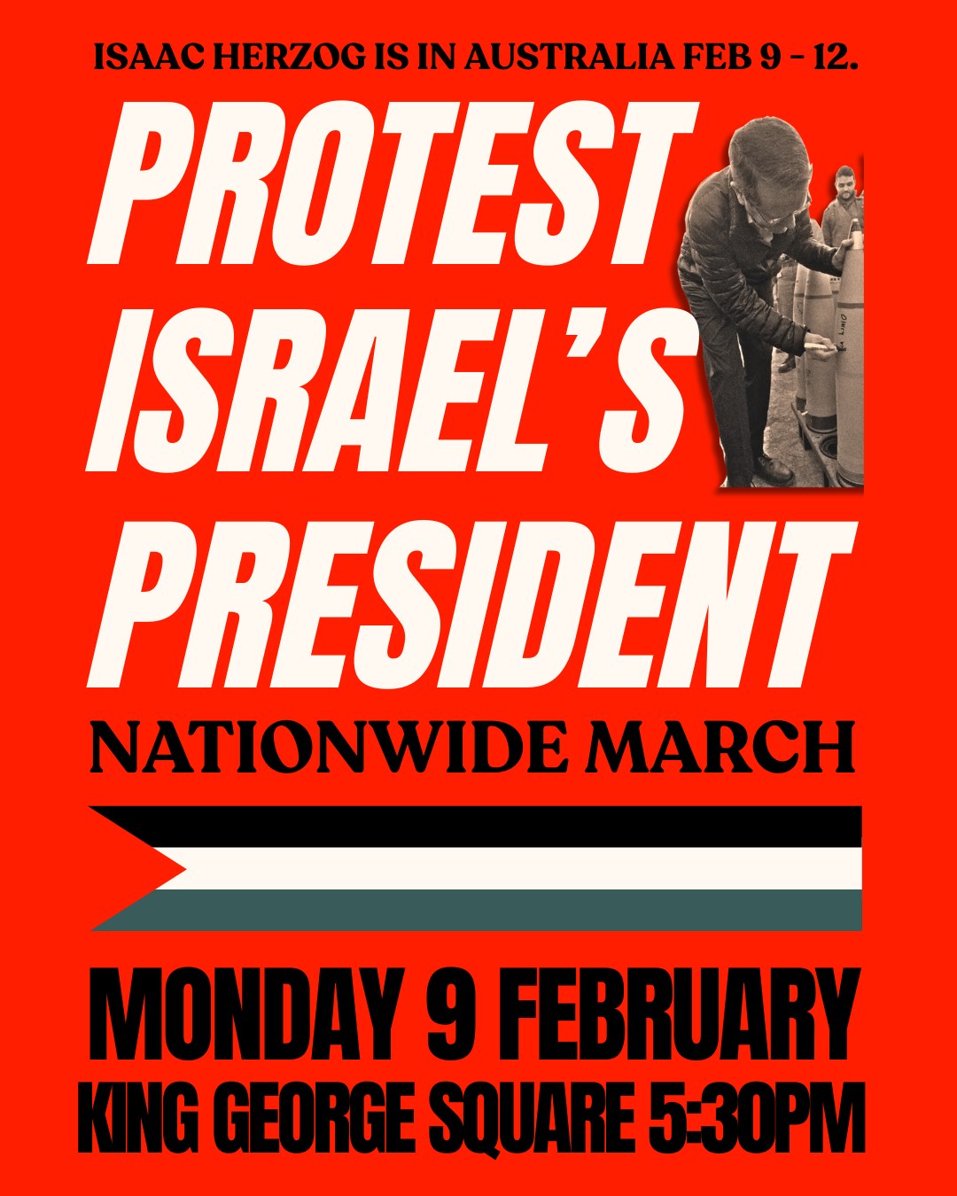 Israeli President Isaac Herzog will be here from 9th to 12th February. Herzog should be arrested for inciting genocide the moment he steps foot on this continent. By welcoming Israeli war criminals here, the Australian Government are deepening their complicity in an ongoing genocide.