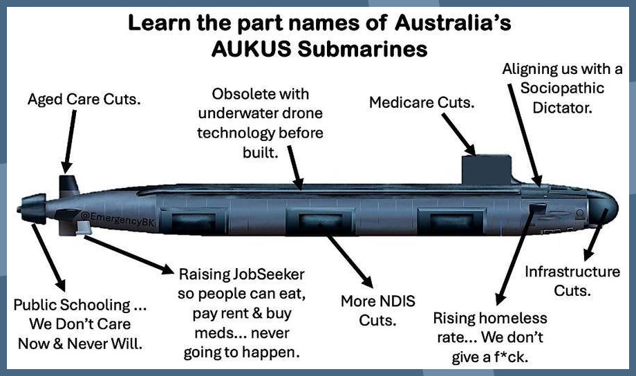- Dr Margie Beavis (Medical Association for Prevention of War, International Campaign to Abolish Nuclear Weapons) on the broader military context of AUKUS nuclear submarines