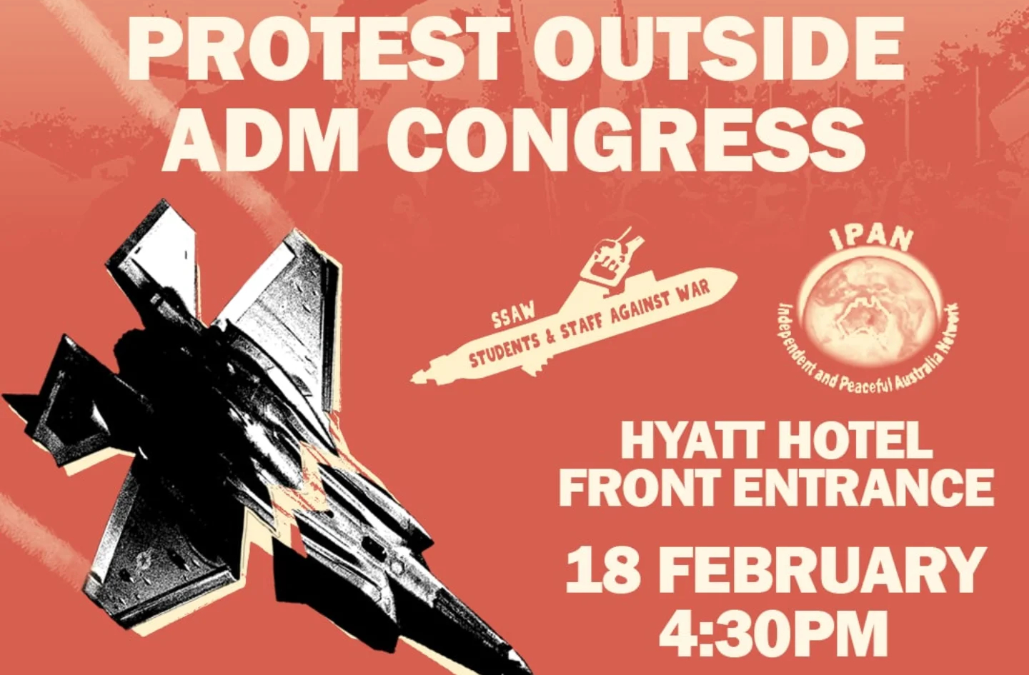 We will be protesting outside the ADM Congress on Wed 18 Feb at 4.30pm at the footpath on the front entrance of the Hyatt Hotel (120 Commonwealth Ave, Yarralumla).