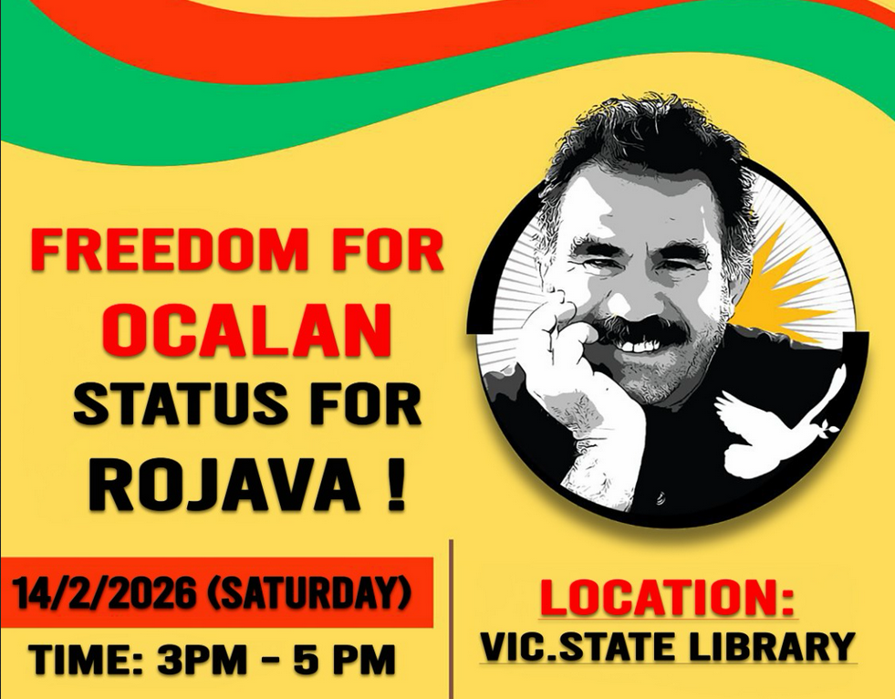 We have organised a rally this Saturday, 14 February at 3:00 PM in front of the State Library under the banner: “Freedom for Öcalan, Status for Rojava.”