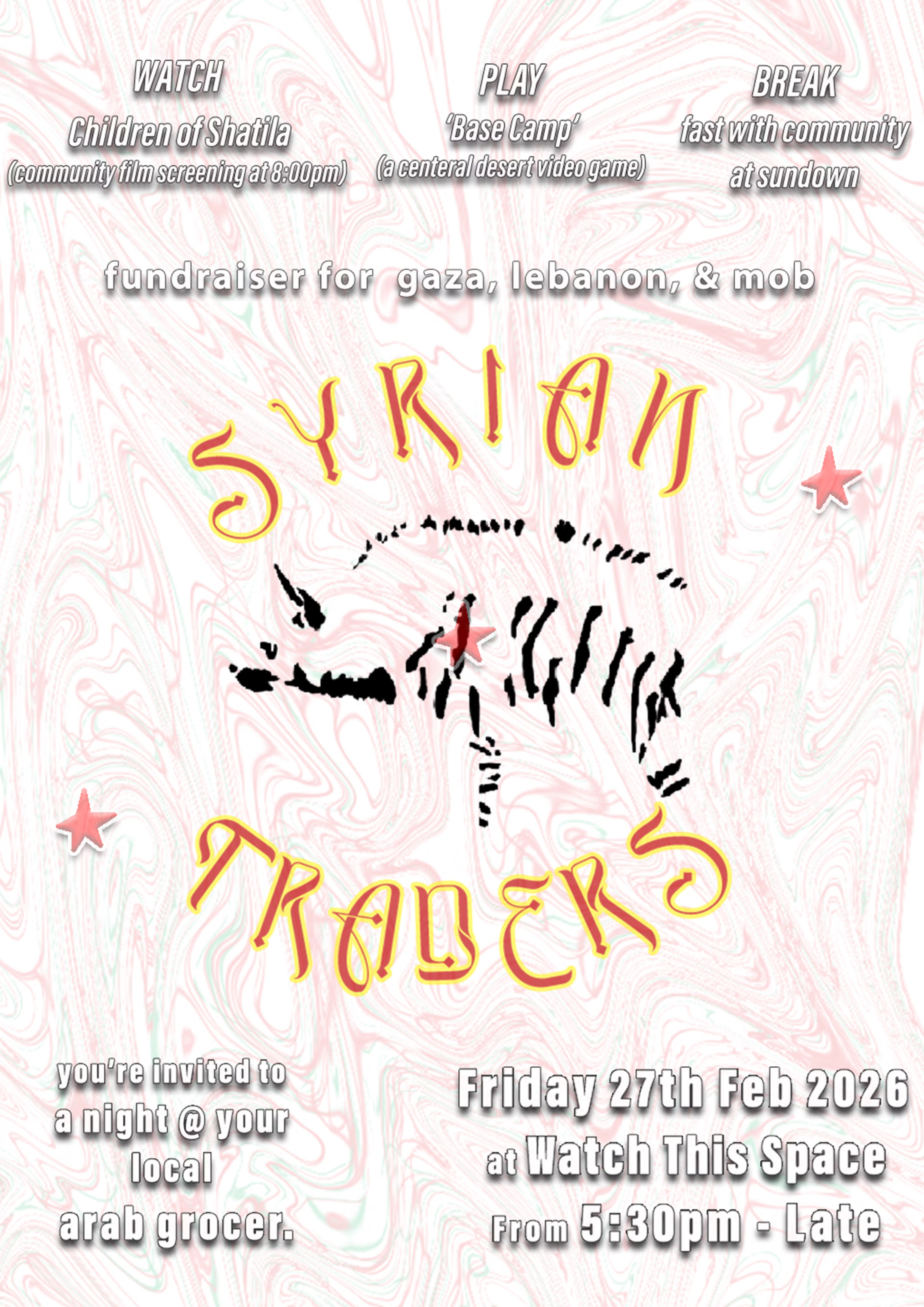 The night is full, featuring an 8:00pm screening of Children of Shatila (1998), a powerful documentary by Palestinian filmmaker Mai Masri following two children growing up in the Shatila refugee camp in Beirut, who use imagination and creativity to navigate life shaped by war, poverty and displacement.