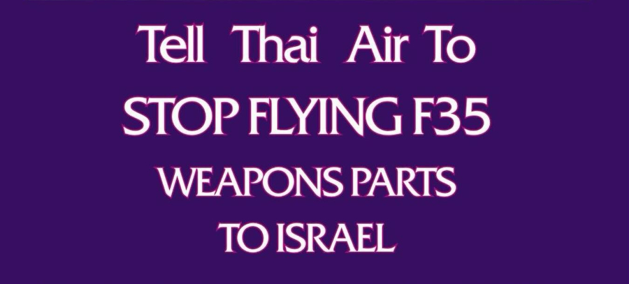 Protest at the Thai Air office to tell Thai Air to stop flying F35 weapons parts to Israel.