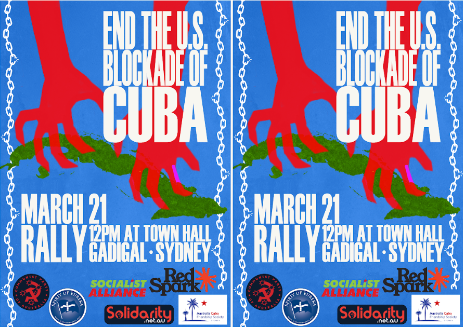 The world has condemned the US blockade of Cuba at the United Nations for 33 consecutive years. This is because Cuba condemns US imperialist policies across the world, plays a significant role in international solidarity by sending medical staff overseas to train and assist personnel in countries of the Global South, and to share its successful literacy program with various countries, including Australia.