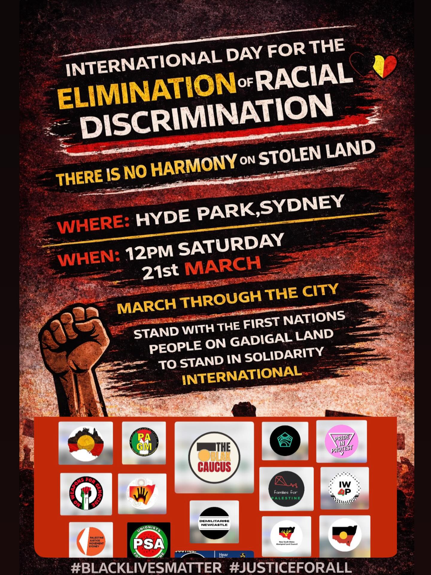 On International Day for the Elimination of Racial Discrimination, we take to the streets to say clearly: There is no harmony on stolen land.