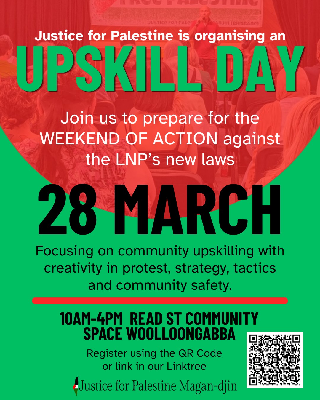 Join Justice for Palestine Magan-djin to prepare for the WEEKEND OF ACTION against the LNP’s new laws.