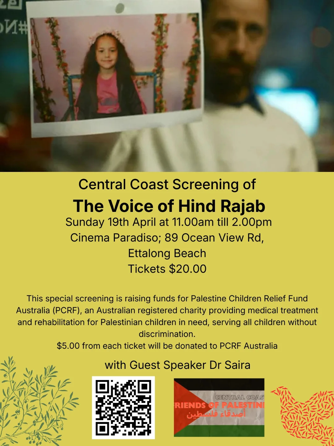This special screening is raising funds for PCRF Australia, an Australian registered charity providing medical treatment and rehabilitation for Palestinian children in need, serving all children without discrimination. Donations will help support paediatric evacuations, specialist medical missions and the supply of medical equipment and supplies.