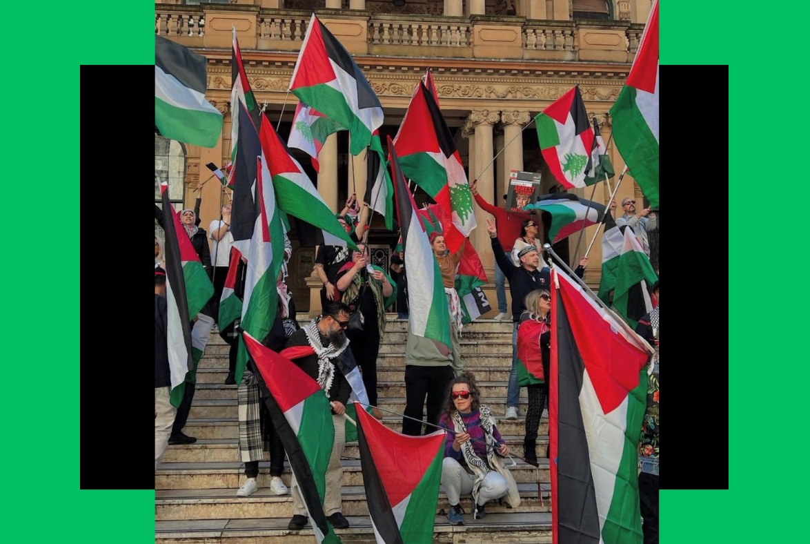 From 12 noon at Sydney Town Hall. Bring your own Palestine flag, or wave one of ours. Join us for this family friendly event.