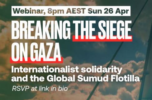 Join an online discussion with special guest speakers and the Australian participants of Global Sumud Flotilla (GSF) currently sailing towards Gaza. Together we will explore the importance of internationalist solidarity with the Palestinian people as an essential element to break the siege of Gaza.