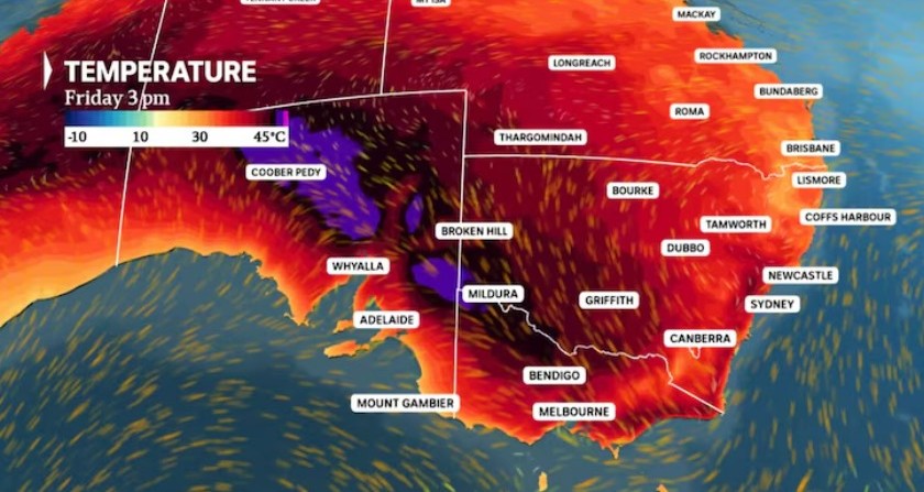 Professor Steve Turton of Central Queensland University explained the science in The Conversation on January 27. Each summer, Turton noted, monsoonal troughs over northern Australia push upper-atmosphere high pressure systems further south. Air from these systems then flows down over central, southern and eastern regions. As it descends, compression raises its temperature.