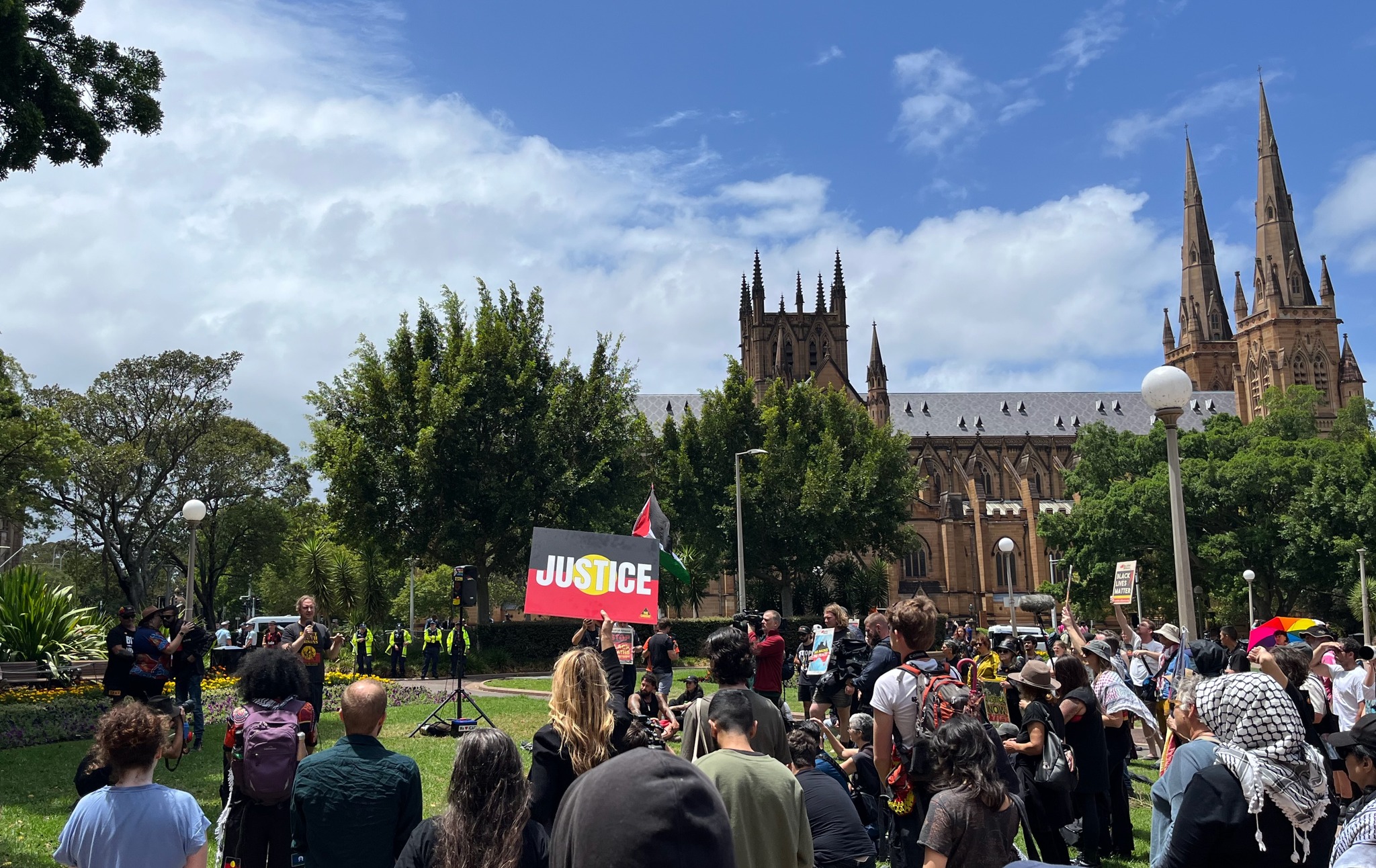Speakers included Greens Member of the Legislative Council Sue Higginson, Aboriginal justice activist Paddy Gibson and Dunghutti man Rick Hampson Snr.